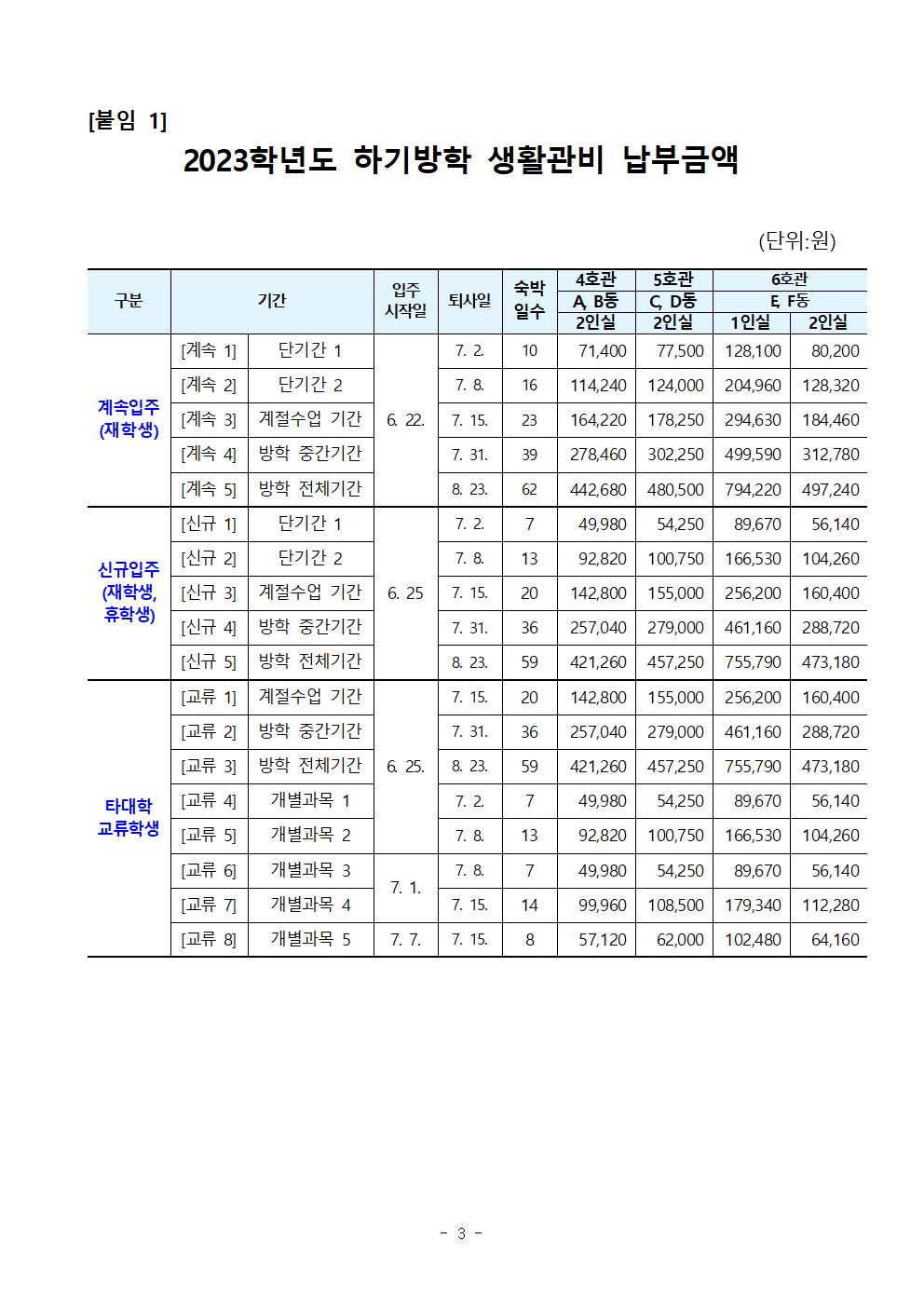 · 첨부 #1 : 2023학년도 하기방학 입주학생 생활관비 납부 안내(0615).pdf (159 KBytes)